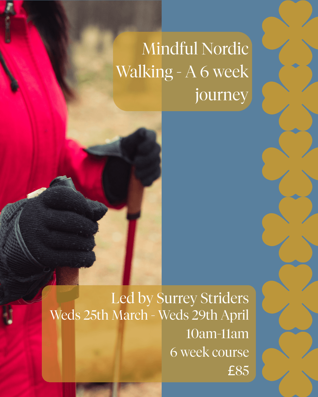 Mindful Nordic Walking: A 6 Week Journey | Led by Surrey Striders | External Event Hosted at Burrows Lea ![]()