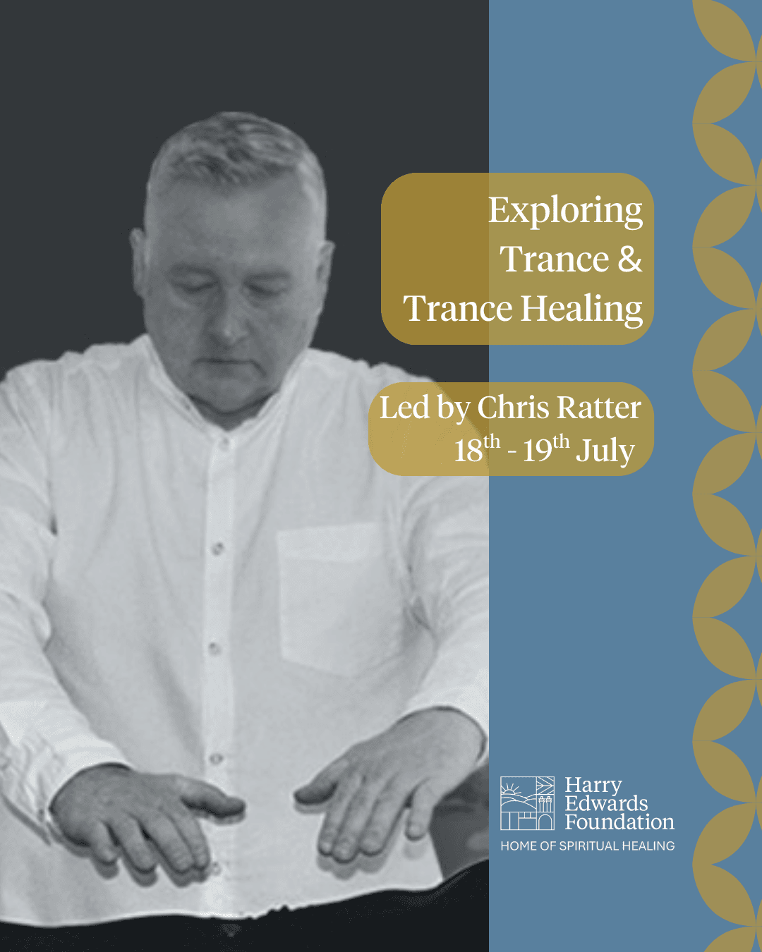 The workshop begins by establishing a strong foundation which will help attendees develop a deeper awareness of the Power that Spirit works through. From this grounding, Chris will guide participants through the blending process, allowing them to experience and recognise the subtle shifts that lead into trance.